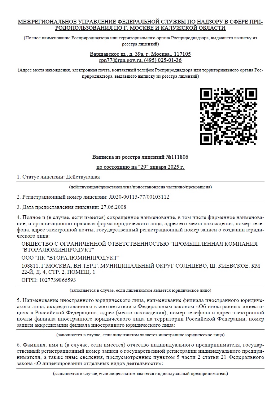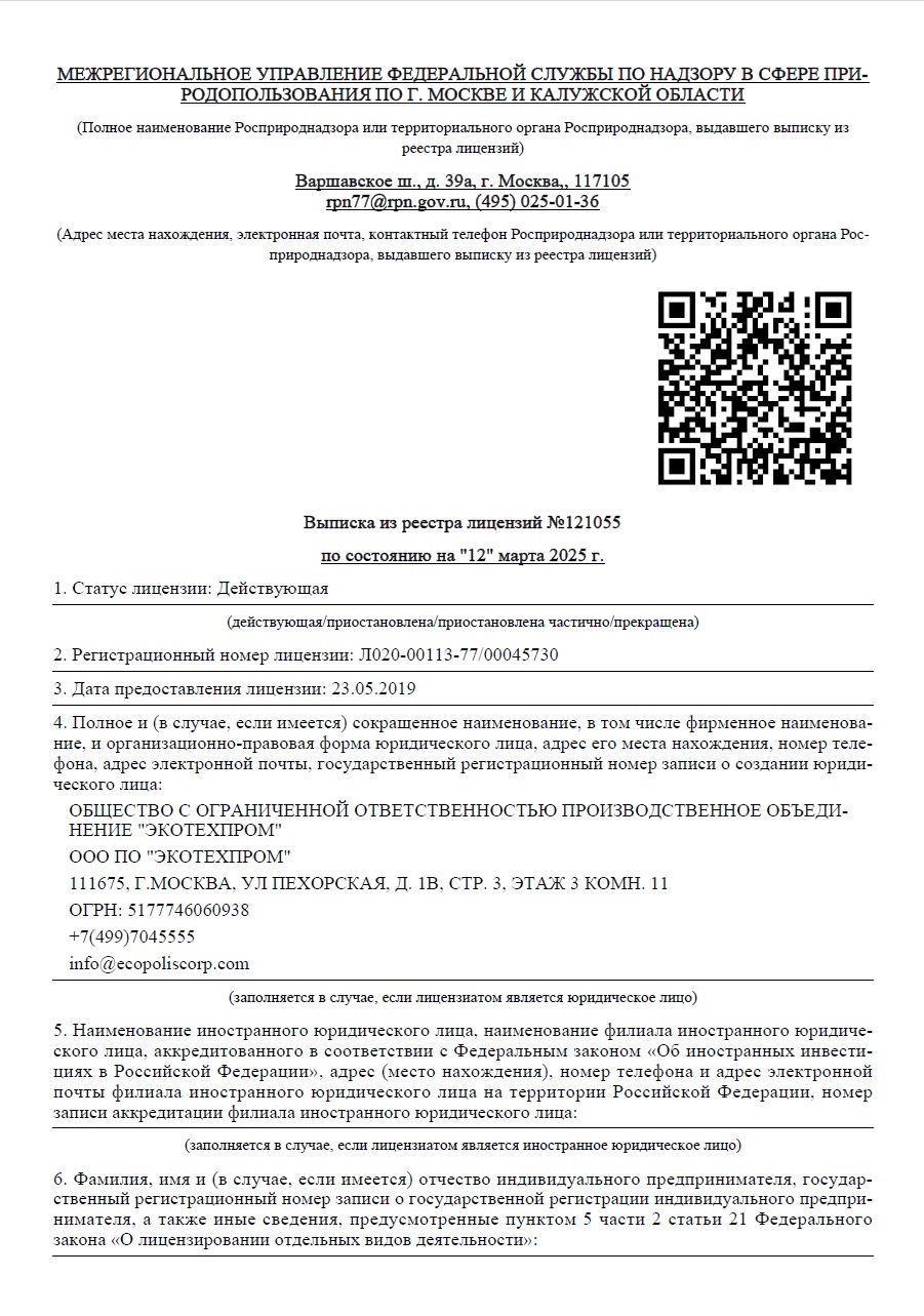 Лицензированная компания (есть все необходимые документы для осуществления деятельности по переработке и утилизации) -